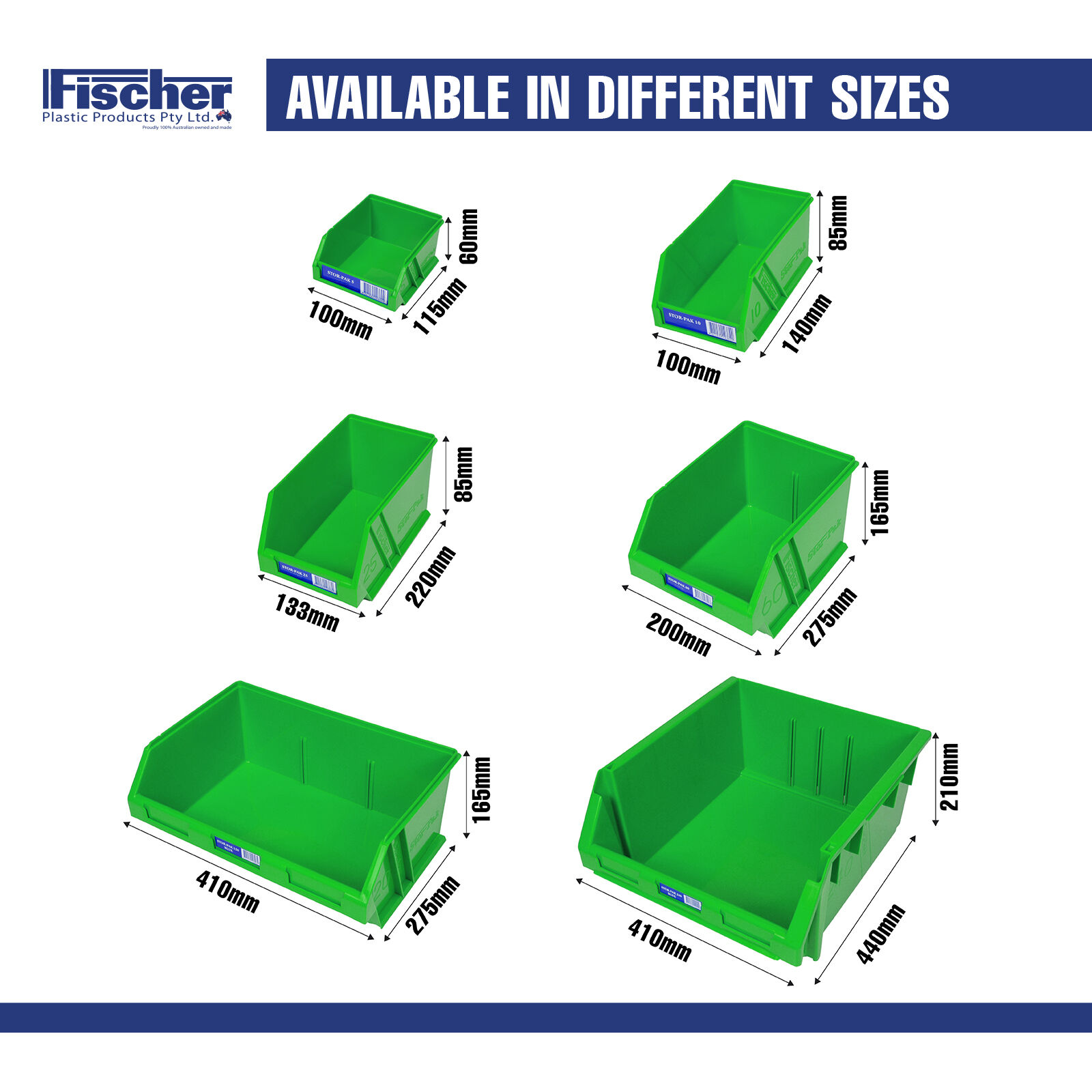 Proudly Australian-made, the Fischer Stor-Pak is designed for efficient organisation, helping you keep small parts, tools, and components easily accessible. Made from tough polypropylene, these stackable storage tubs are built to withstand daily use in industrial, trade, and home settings. With an angled front for easy access and label identification slots for quick sorting, Stor-Pak ensures a clutter-free and efficient workspace.